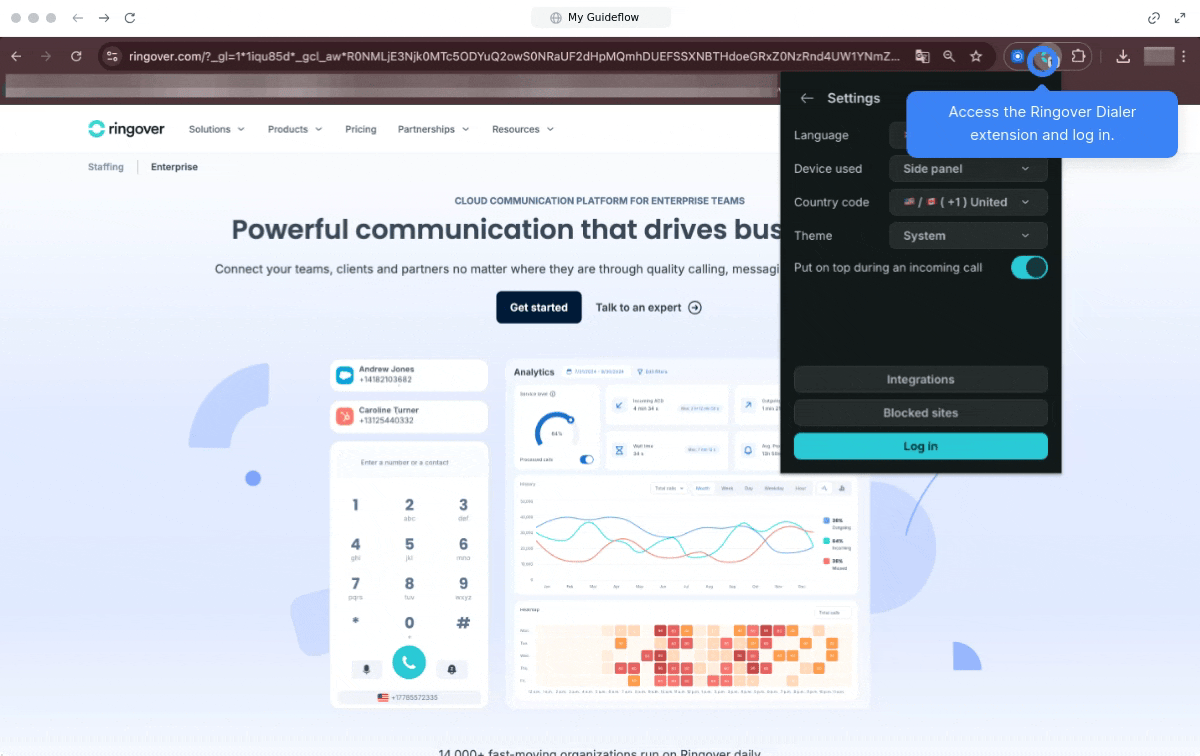 - Open the Ringover Dialer extension and log in.