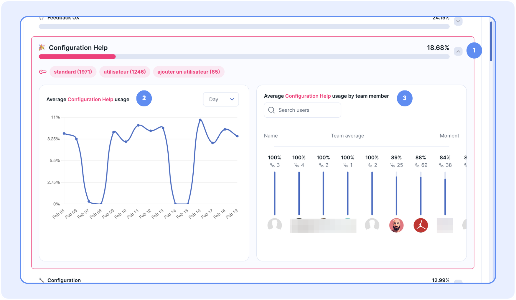 In the moment section, you visualize the frequency rate of moment usage.