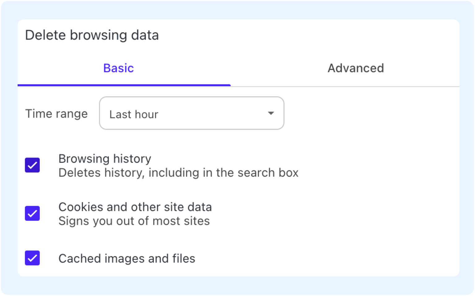 The Basic option is a quick and simple way to clear the most common browsing data.