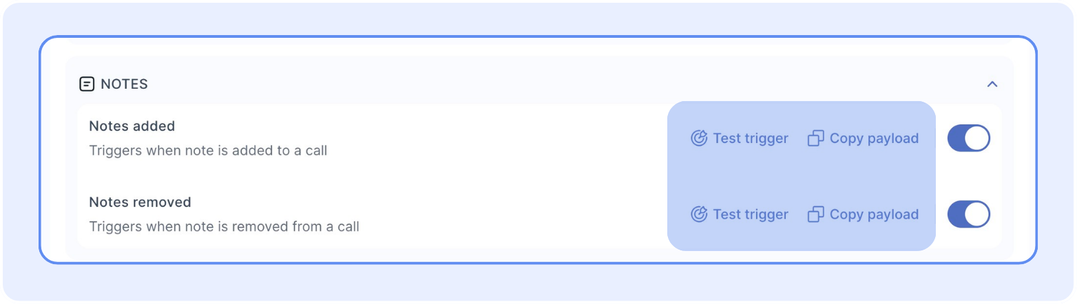 - You can activate a trigger to test it and copy the payload.