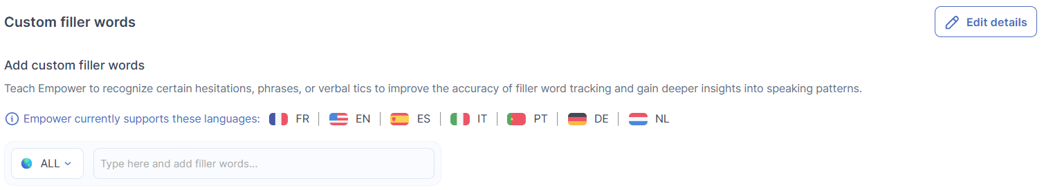 👉 By configuring your customized filler words, you make Empower’s analysis even closer to the reality of your conversations.