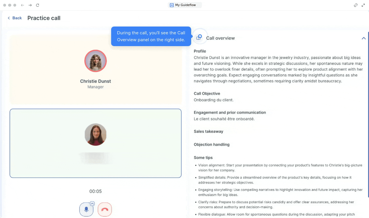 - While you are on the call, the interface will actively assist you.
