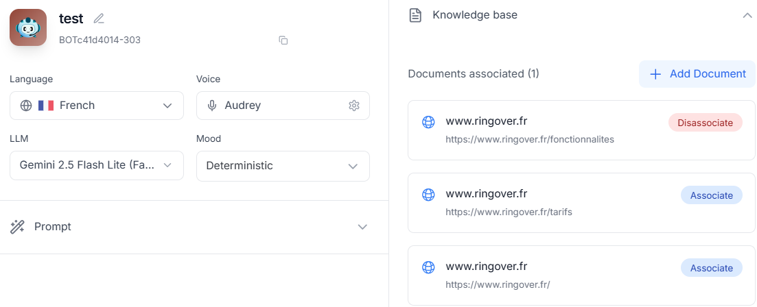 Adding a document to the knowledge base is not enough. For an agent to use it, it must be explicitly associated.