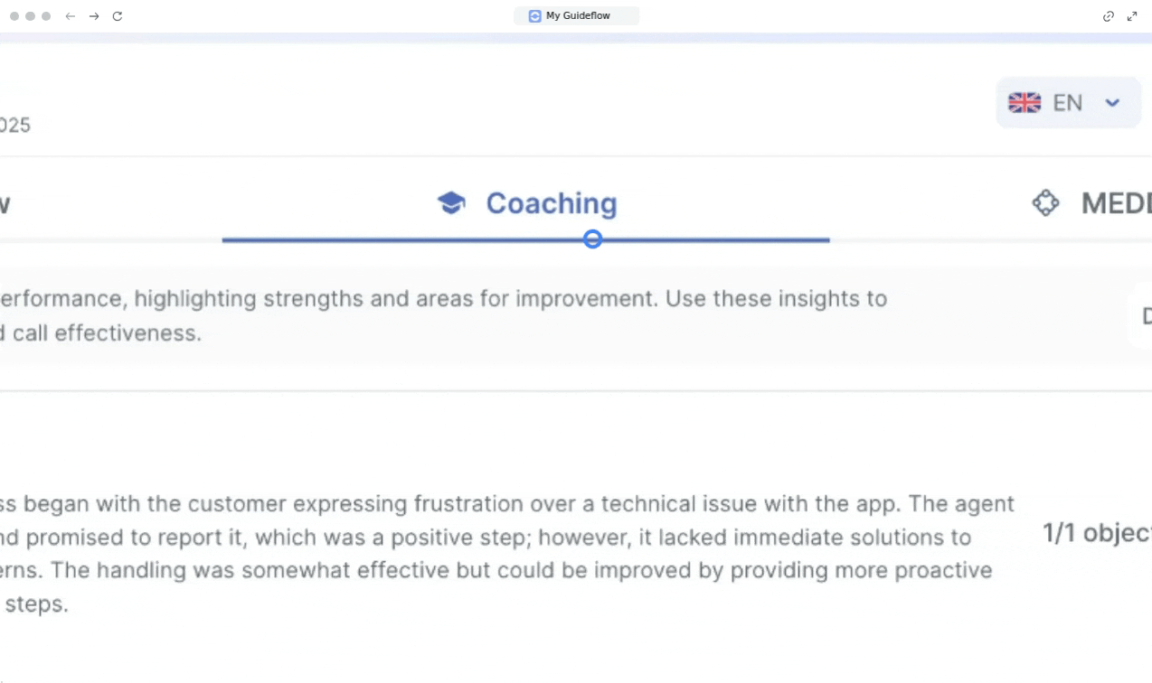- Then go to the “Coaching” section to view details of the points observed during the interaction, as well as tips to improve identified areas.