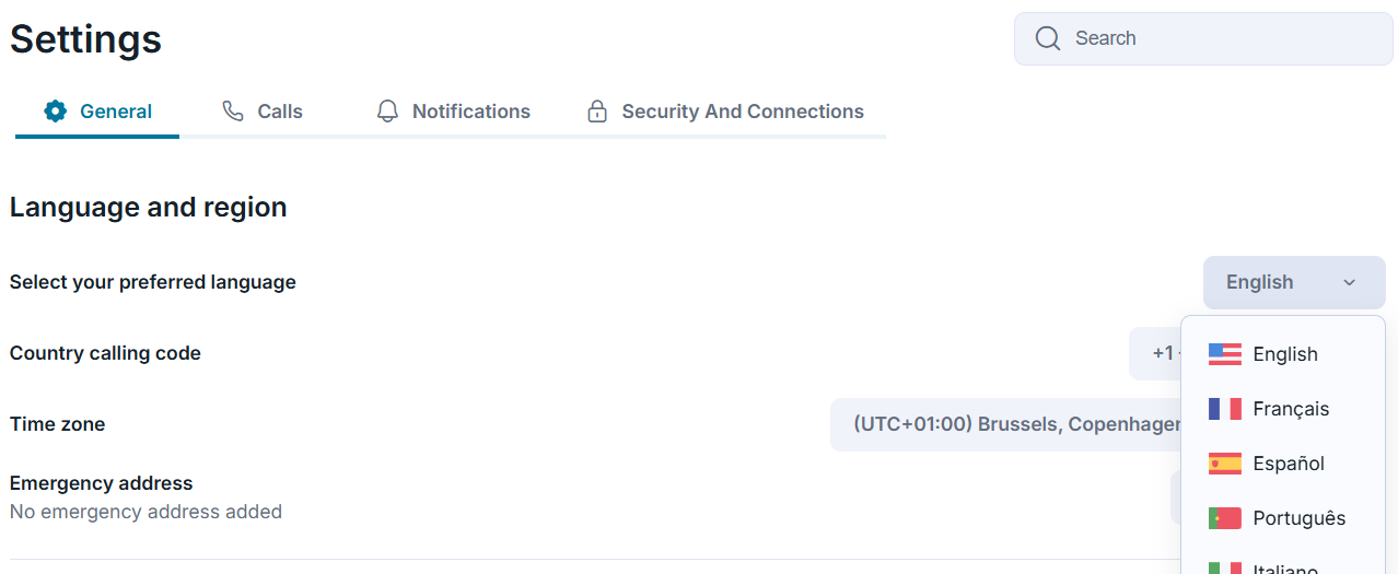 - The Ringover interface is available in French, English, Spanish, Italian, Portuguese, German and Dutch.