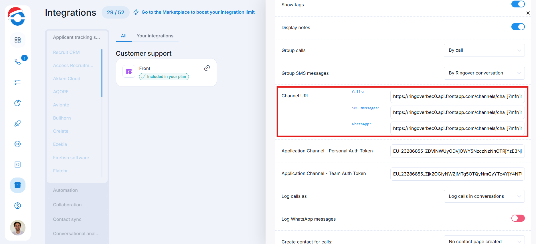 From now on, Ringover calls, SMS messages, and WhatsApp messages will be recorded in Front