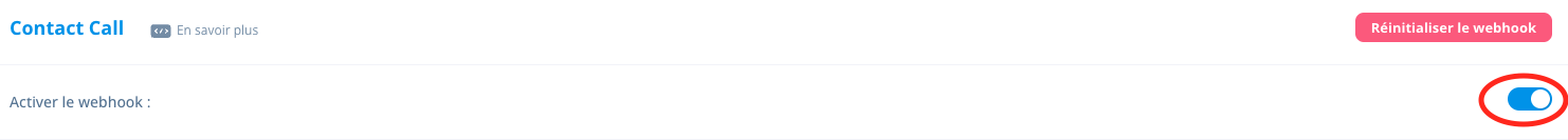 💻 Go to your Webhooks, then activate the “Contact Call” Webhook by switching the cursor to blue.