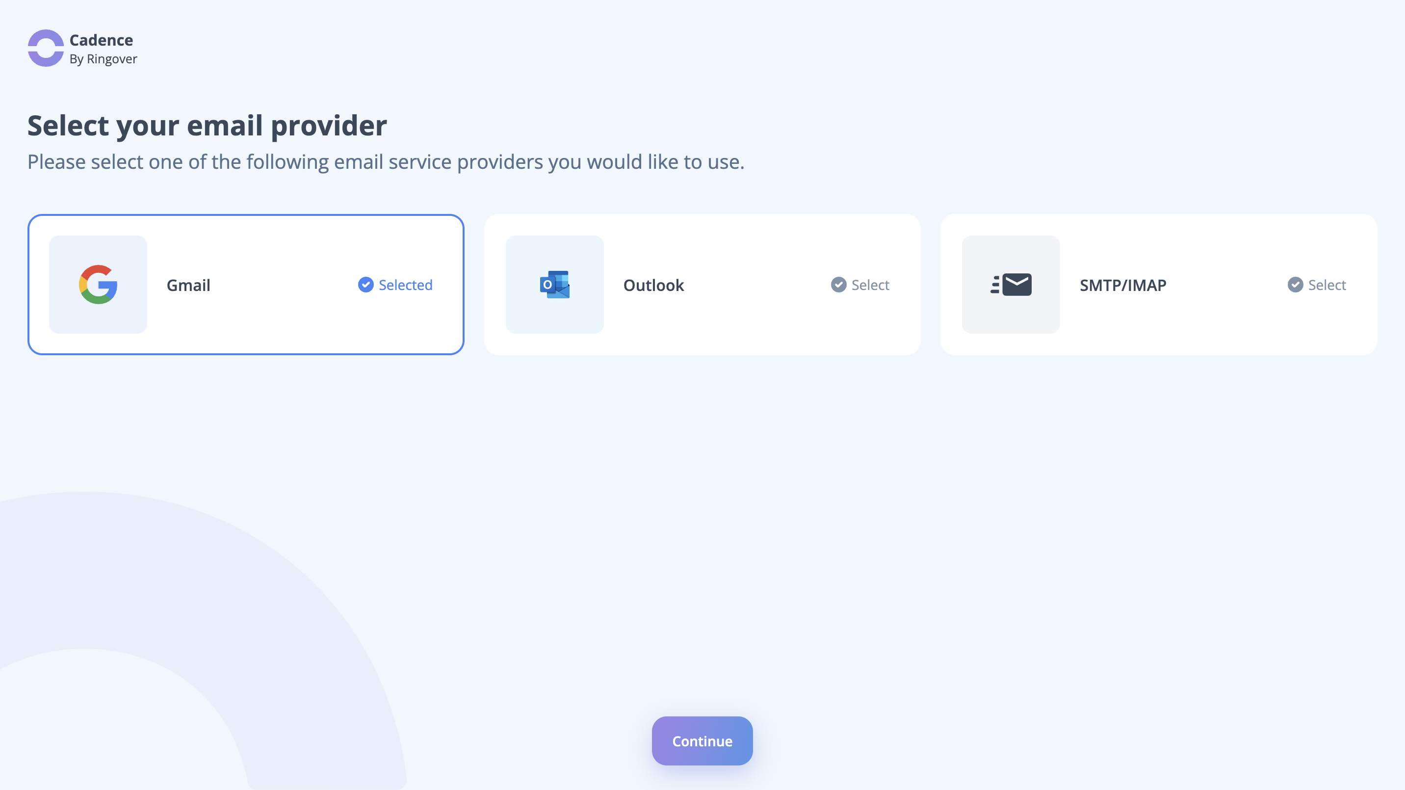 Step 3: You must choose an email provider in the following phase. Gmail or Outlook are your two alternatives. Gmail is chosen in this instance. Now click on Continue.