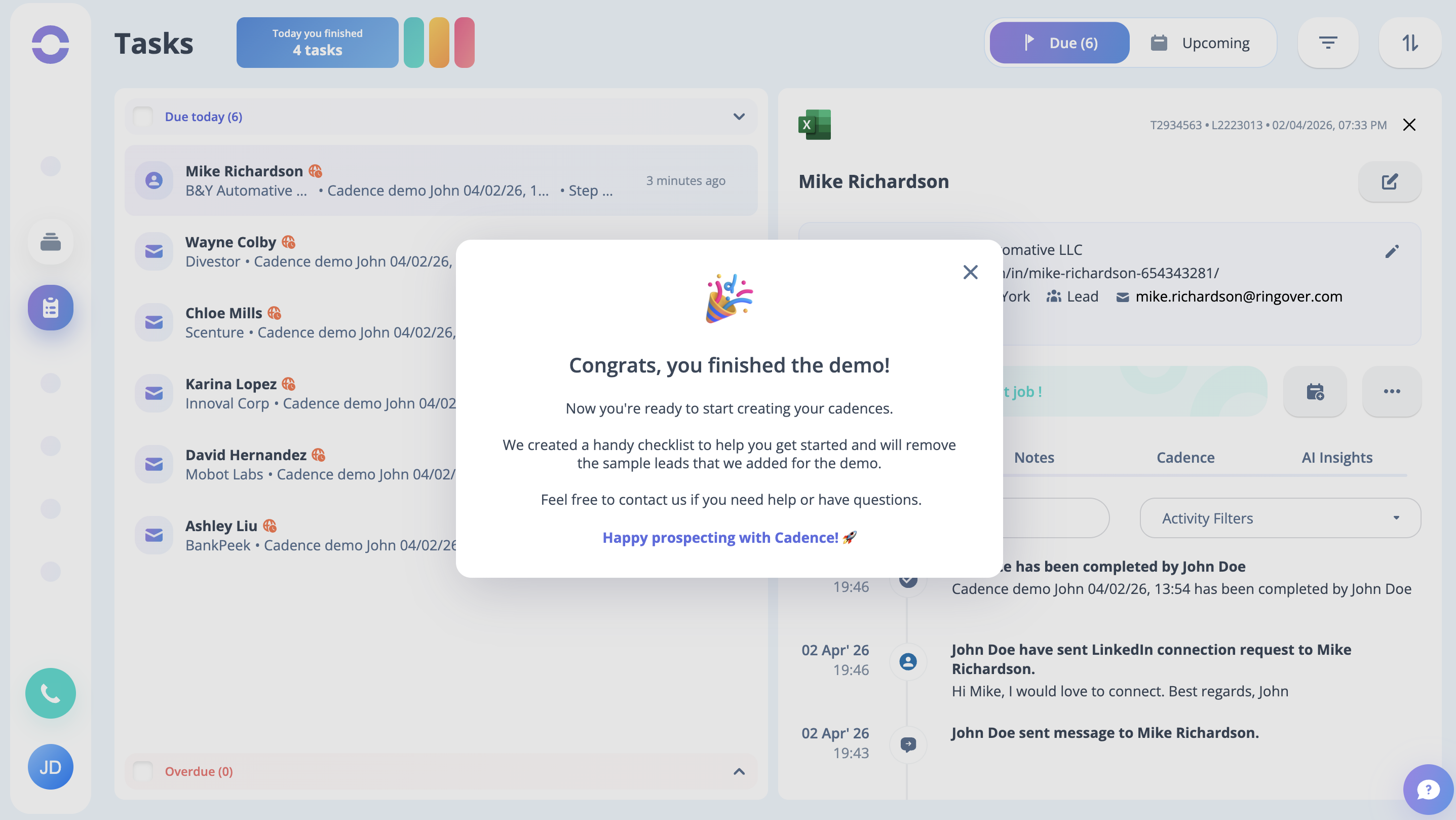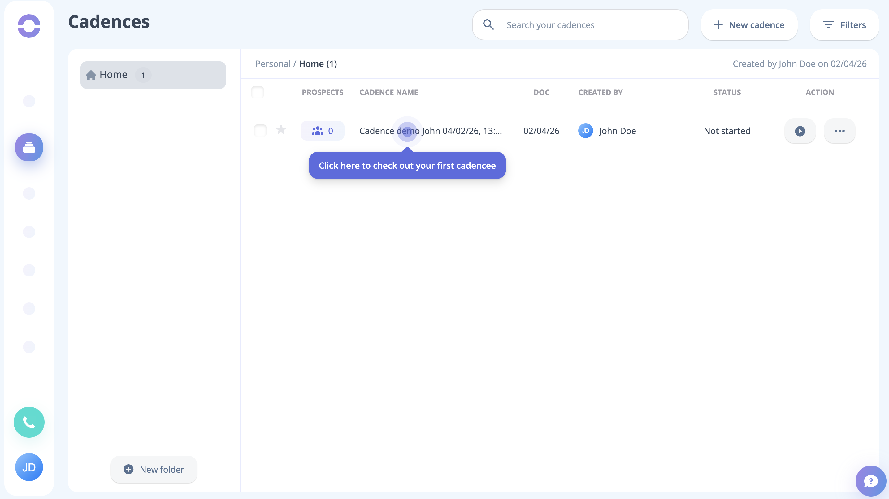 Step 7: The first cadence is now ready to explore. Click on the particular Cadence.