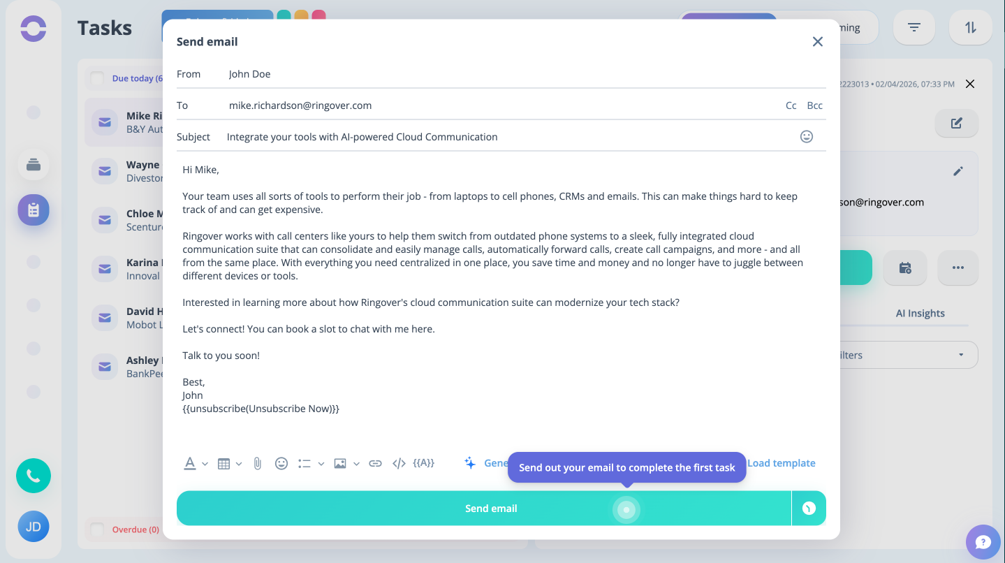 Step 20: The task page will open a modal on the right hand side of the screen where you can see the Semi automated Email button. Click on it.
