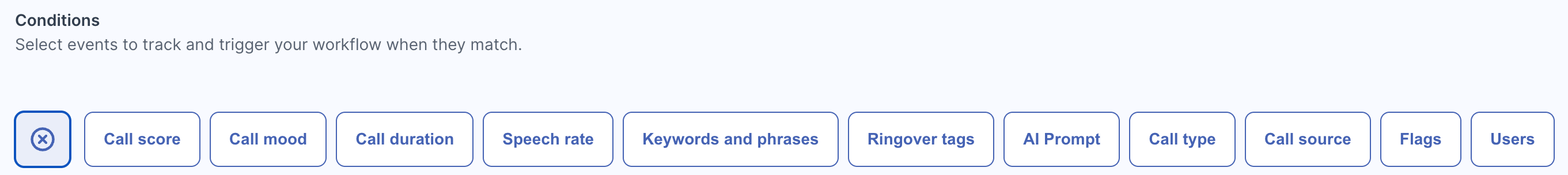 In the conditions, you can, for example, create an AI prompt or add keywords and expressions to better filter calls.