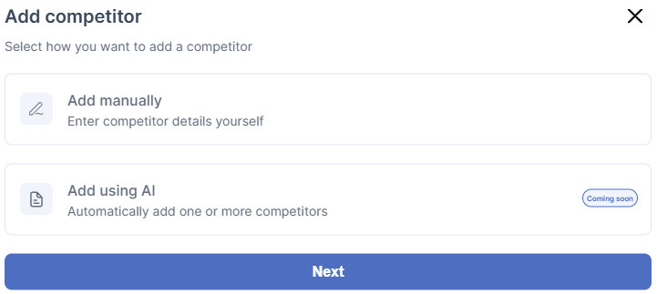 - Add using AI (coming soon): automatic suggestion of competitors to track.