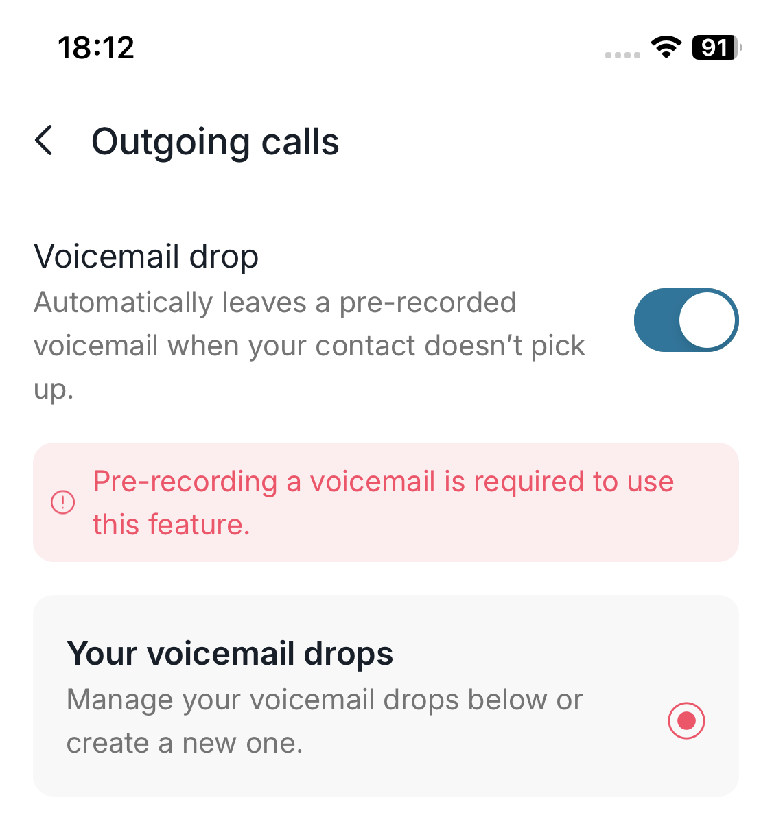 - Enable voicemail drop if you often reach voicemail boxes.