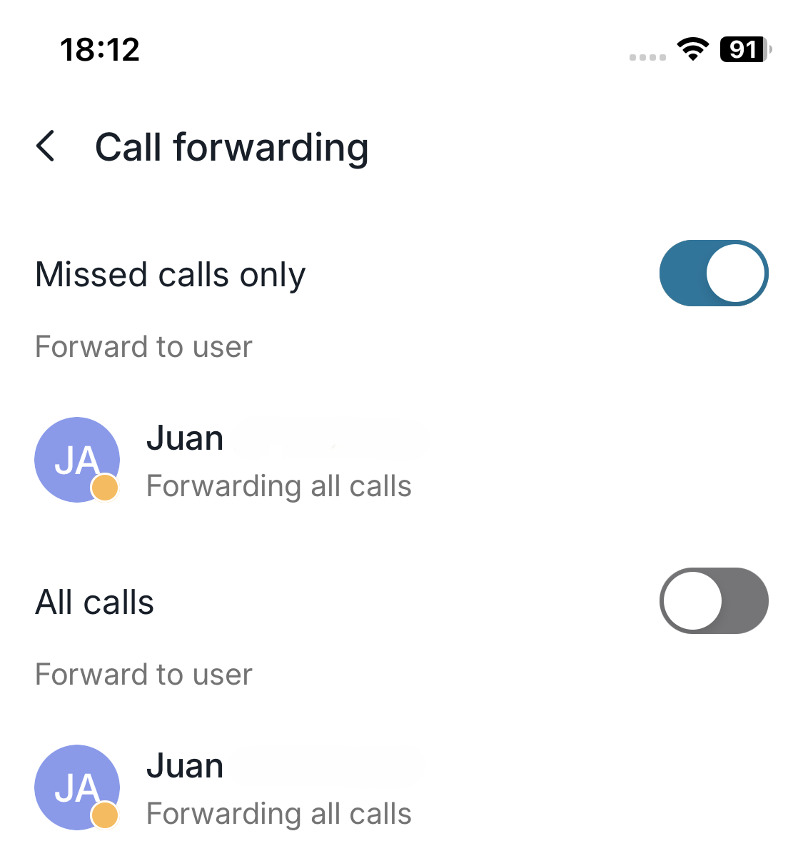 - Choose Missed calls only to ensure service continuity while keeping control over your calls.
