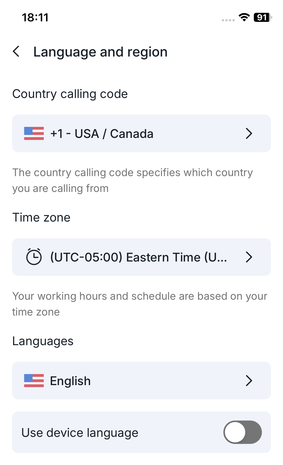 - Choose the app language or enable Use device language.
