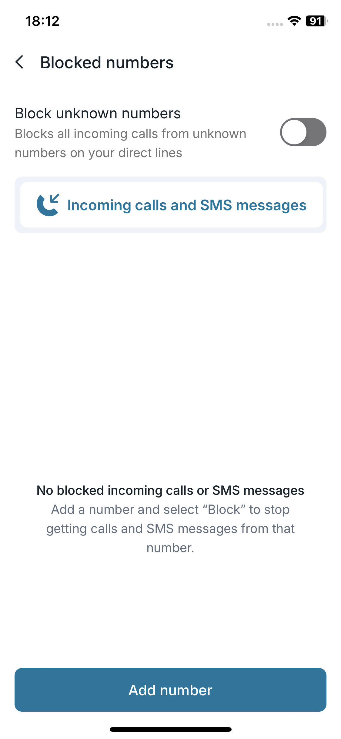 - Add specific numbers to the list to stop receiving their calls and SMS.