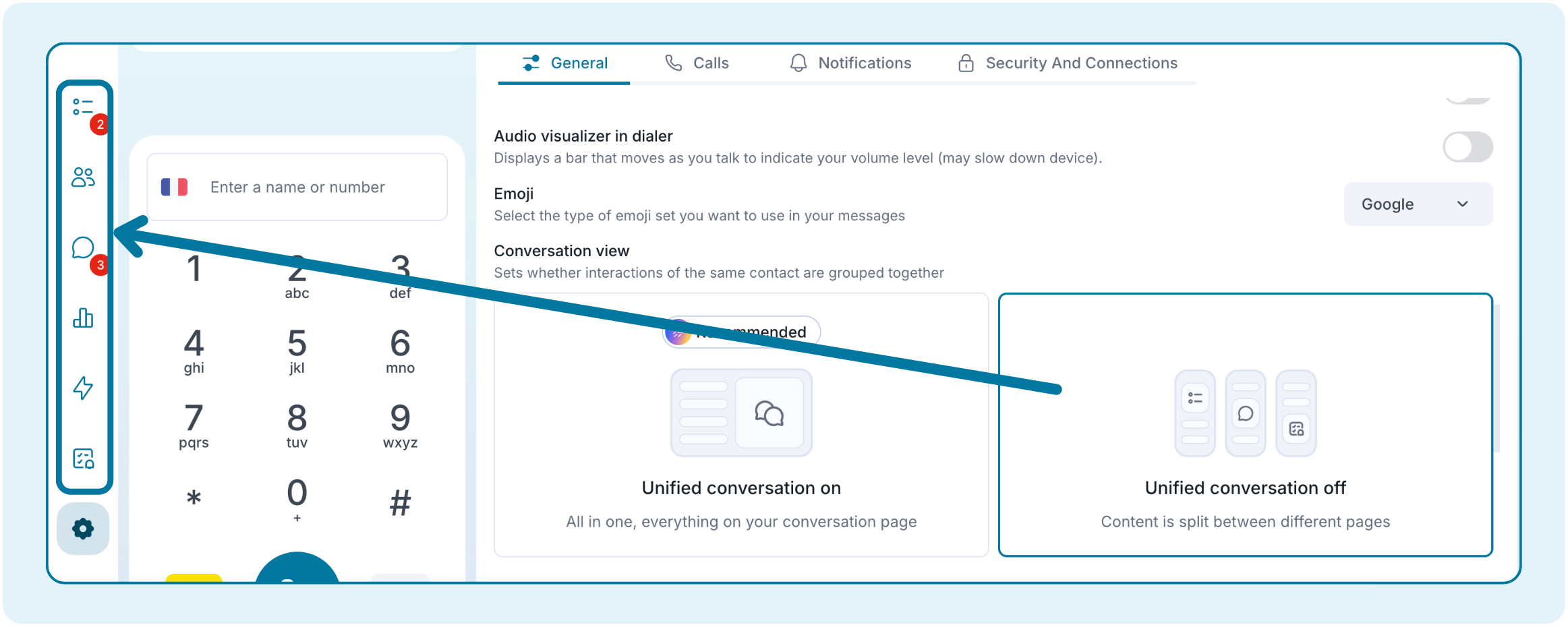 When Unified Conversation is enabled, everything is centralized in a single interface.