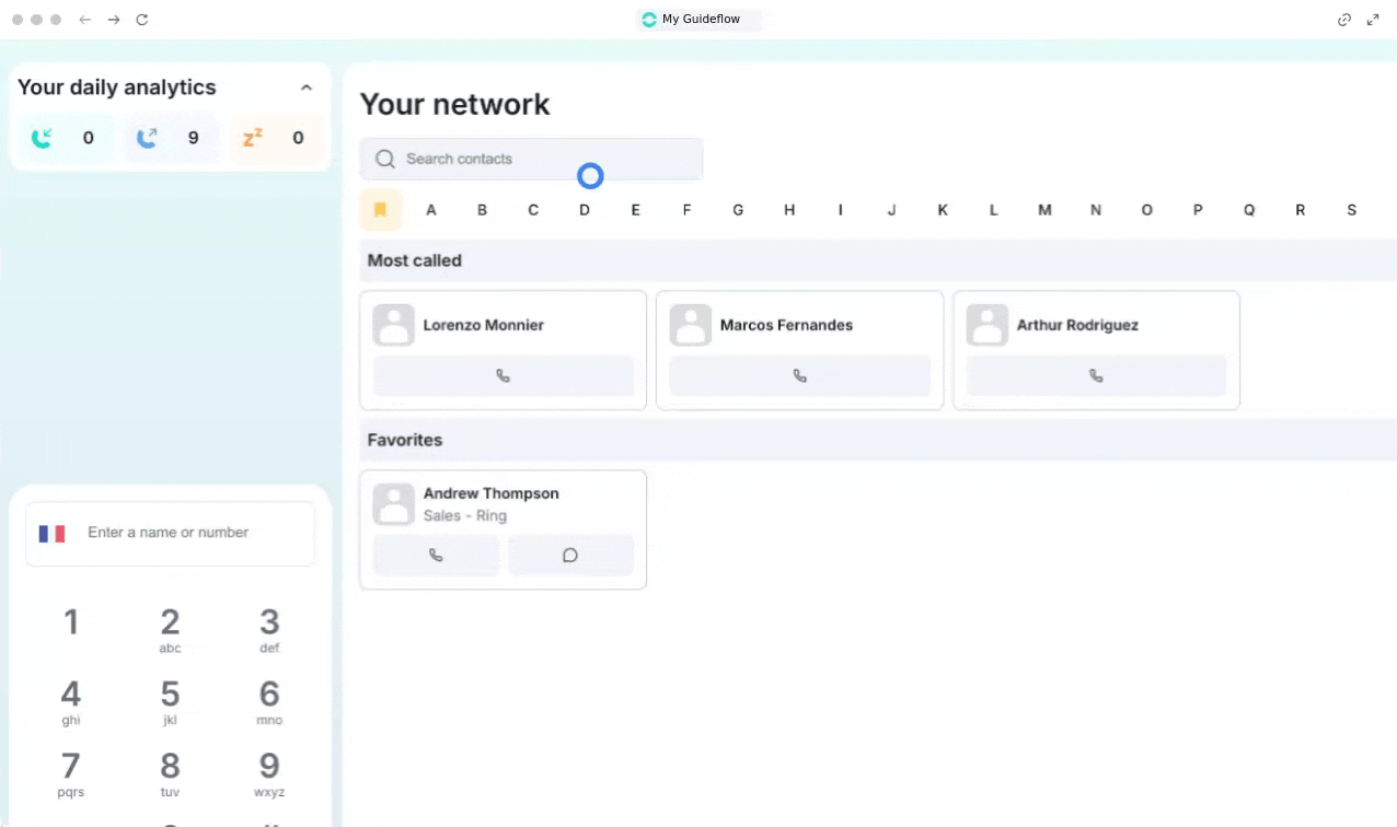 Encuentre rápidamente sus contactos guardados y comience a comunicarse al instante.