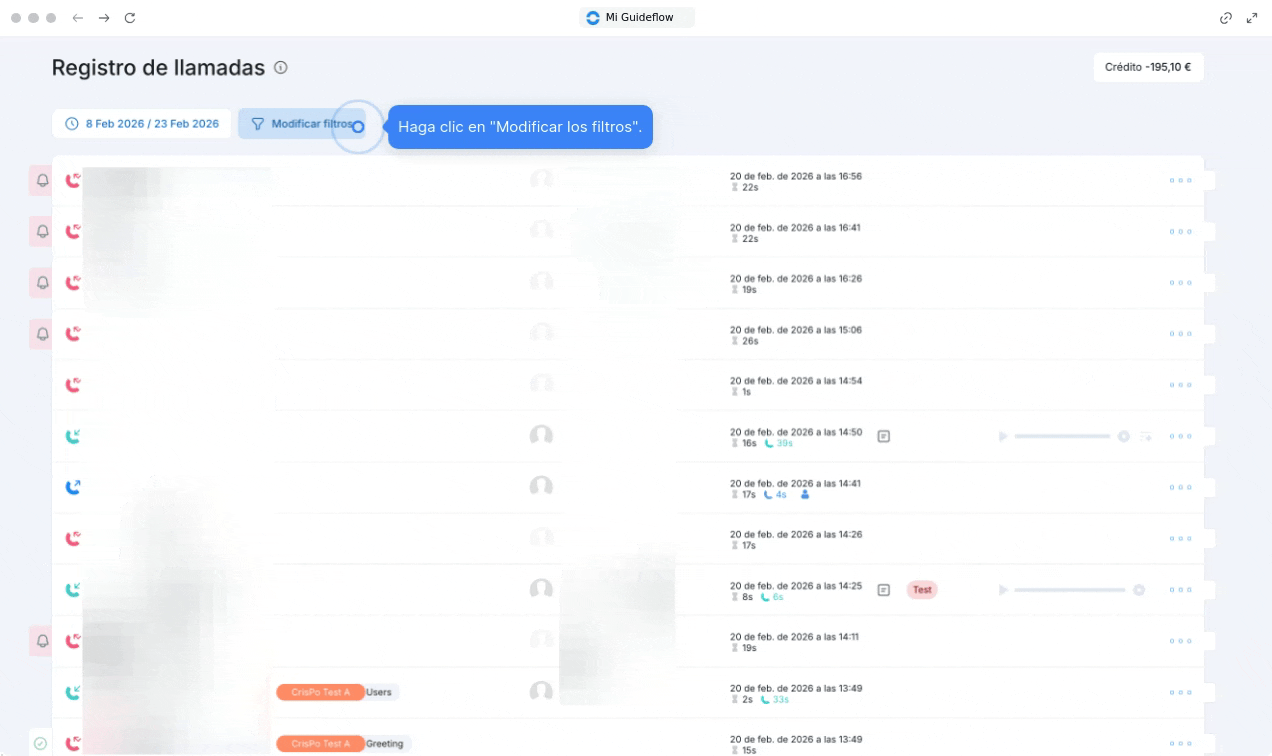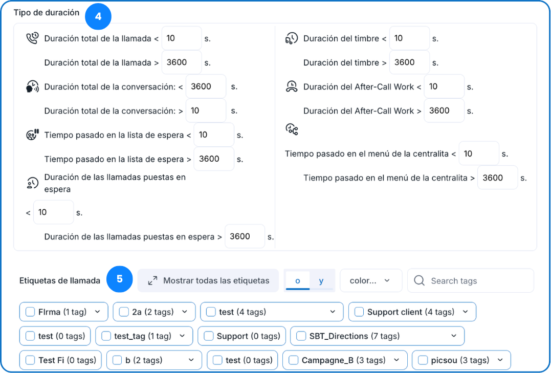 5. Por último, puede filtrar sus llamadas utilizando etiquetas o grupos de etiquetas que haya creado previamente.