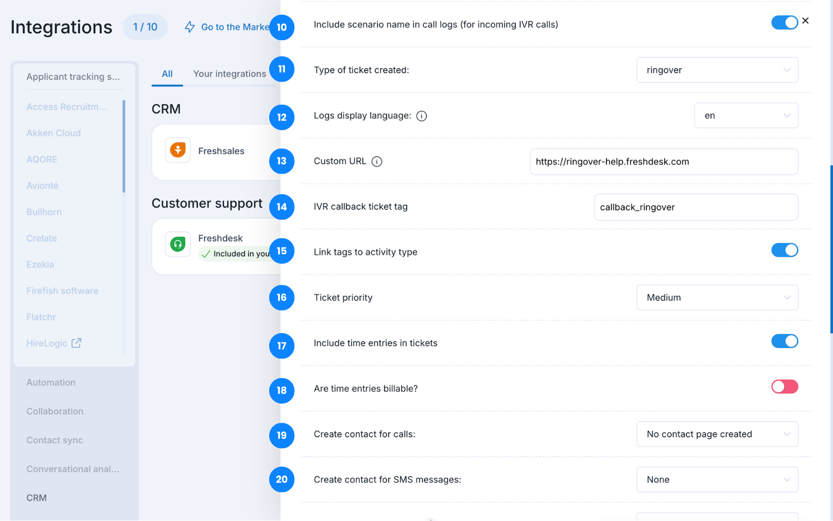Integrar Ringover con FreshDesk