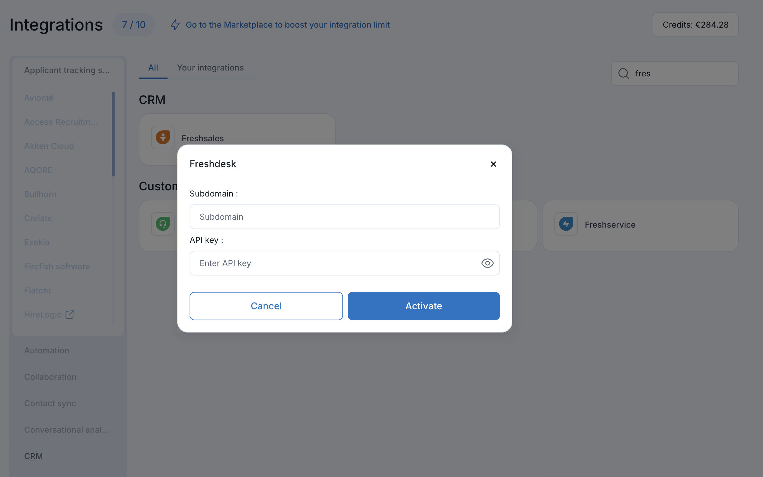 Introduzca su URL de FreshDesk y pegue su clave API.