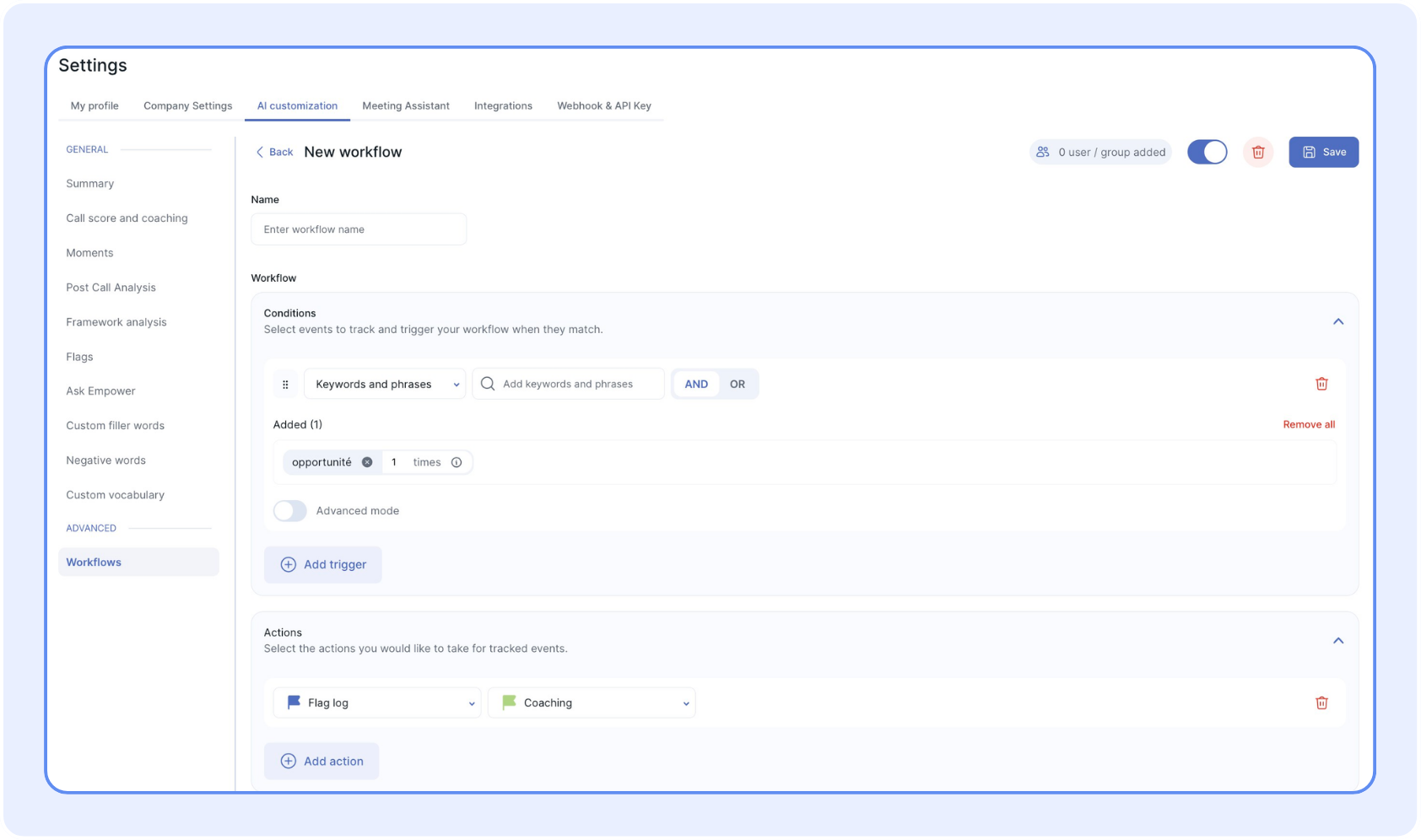 Los Momentos pueden ser muy útiles para activar flujos de trabajo automatizados. Por ejemplo, puede configurar un flujo de trabajo que se active en función de una palabra clave específica para realizar automáticamente acciones como: