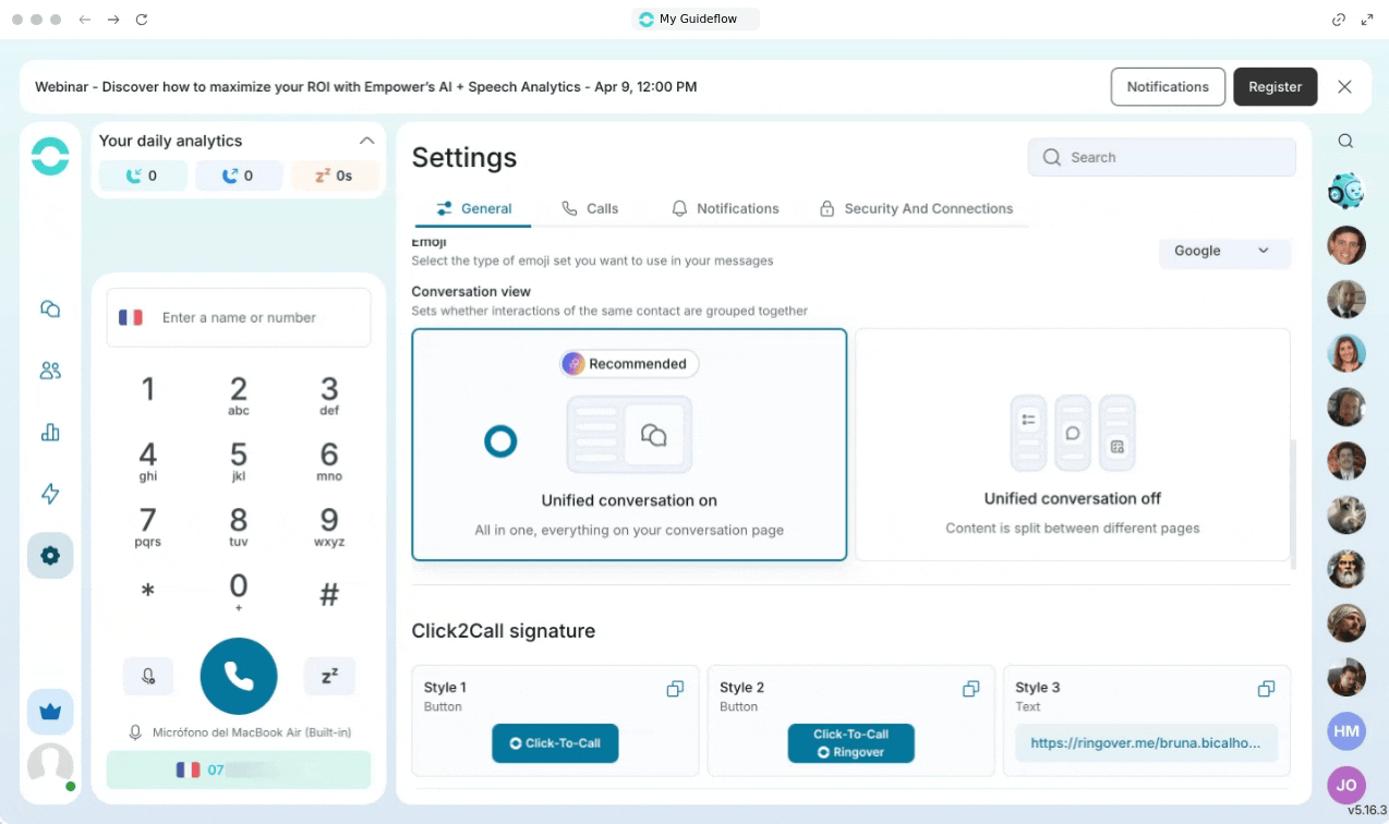 2. Copiar un ID de llamada desde la Web App (Vista Unificada ON)