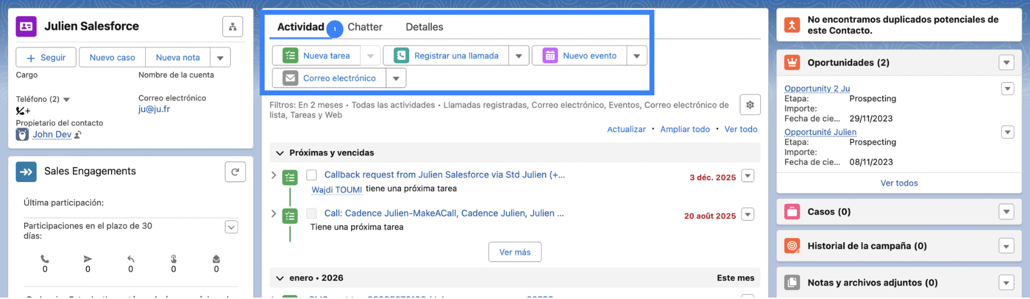 Para realizar o recibir llamadas directamente desde la interfaz de Salesforce: