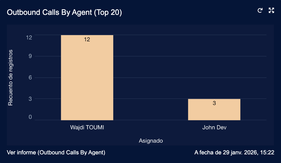 Cuando realizas una llamada, el registro del contacto se abre automáticamente en segundo plano del marcadore, lo que te permite acceder fácilmente a la información del cliente durante la conversación.