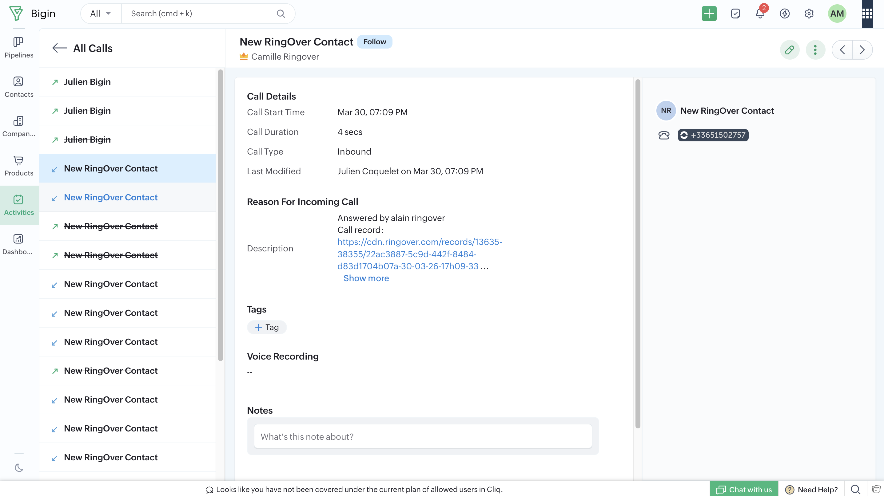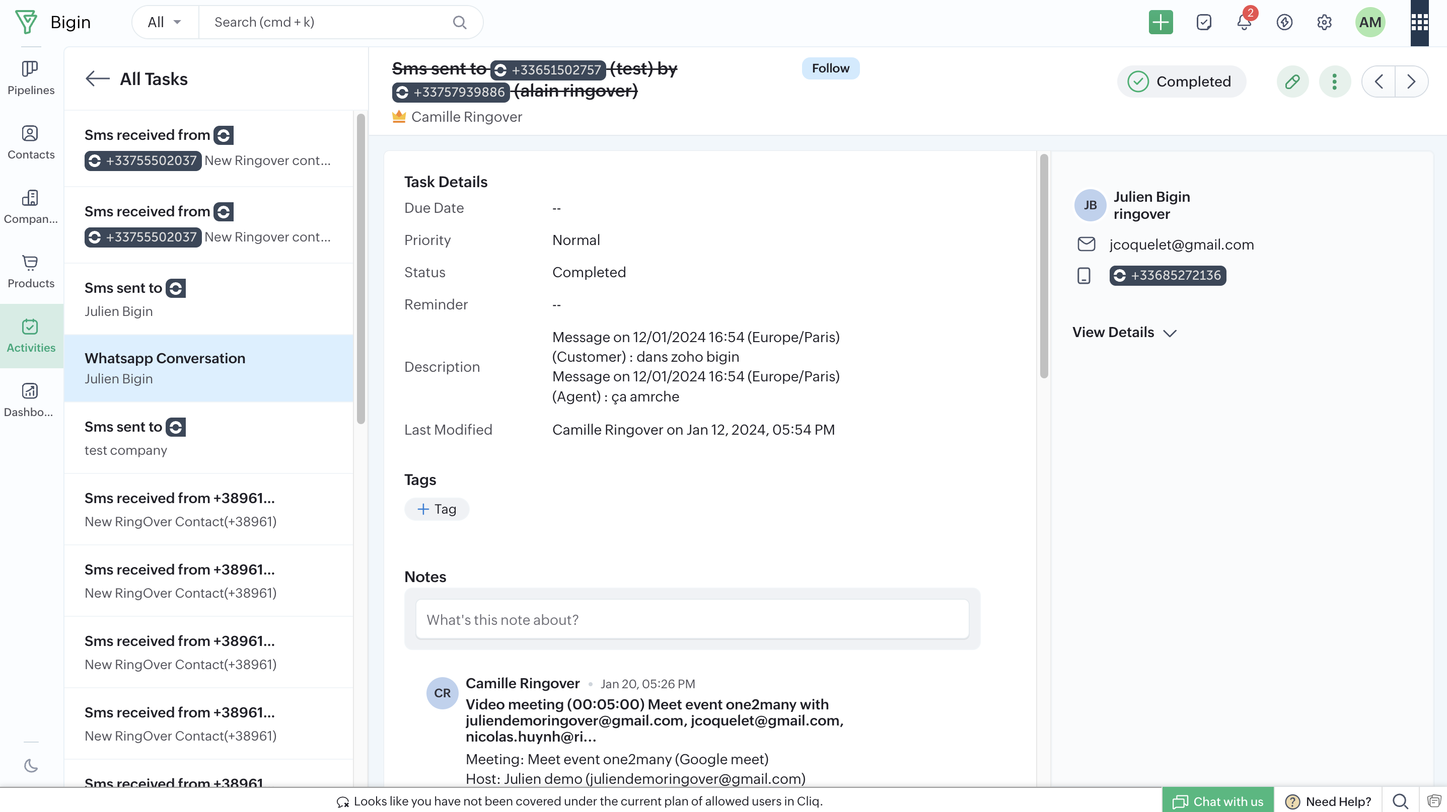 🎉 ¡Ahora ya sabe cómo navegar por la integración de Zoho Bigin y puede gestionar sin esfuerzo todas sus comunicaciones!