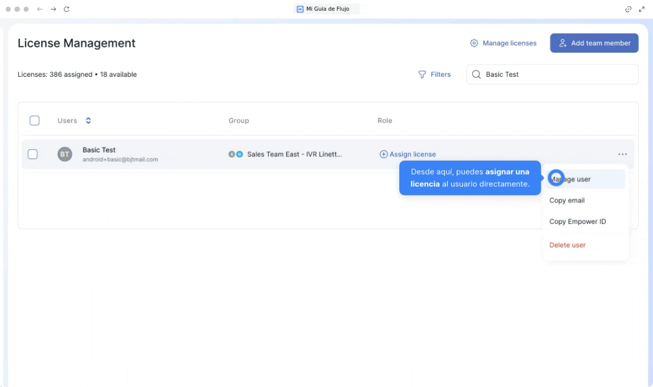 🎉 Con las funciones de gestión de licencias, equipos y usuarios de Empower, los administradores pueden controlar eficientemente el acceso.