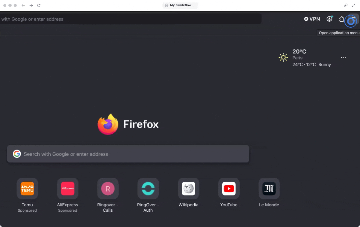 Comience abriendo el menú del navegador para localizar la configuración principal.