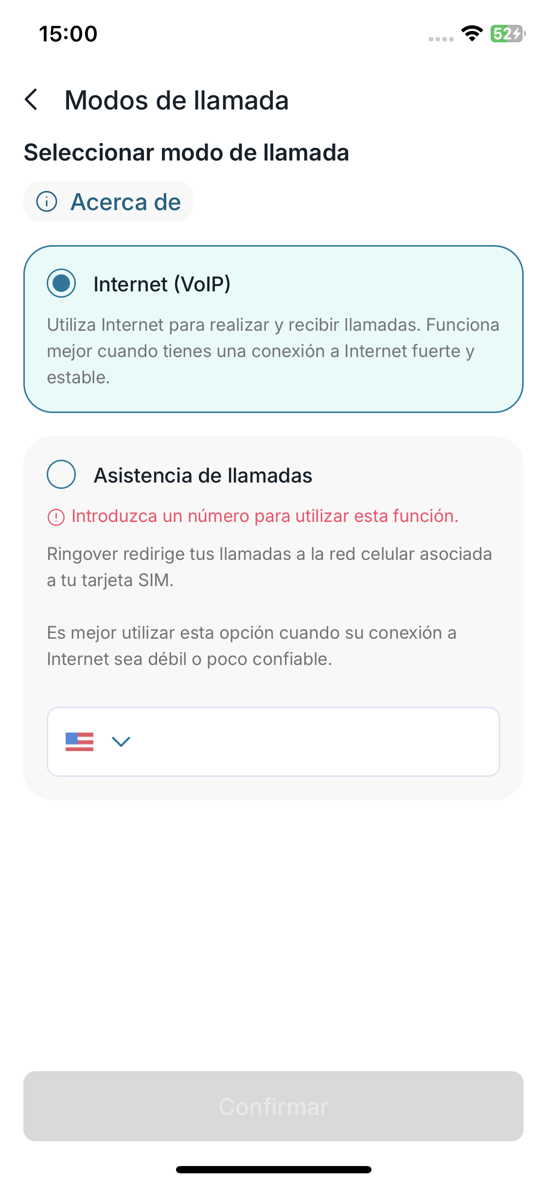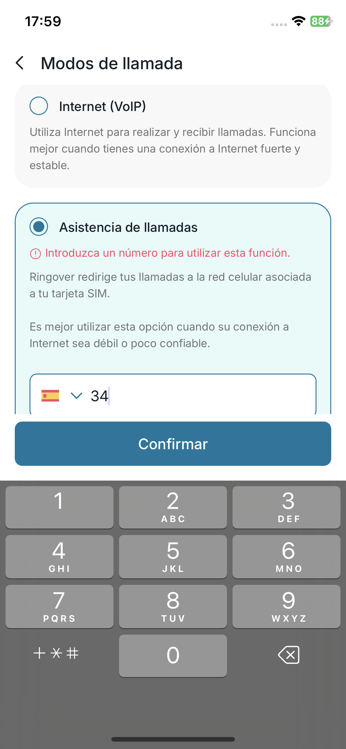 Con la opción "Asistencia de llamadas", tus llamadas serán redirigidas a tu número móvil. Esta función es especialmente útil en caso de una conexión a Internet débil: