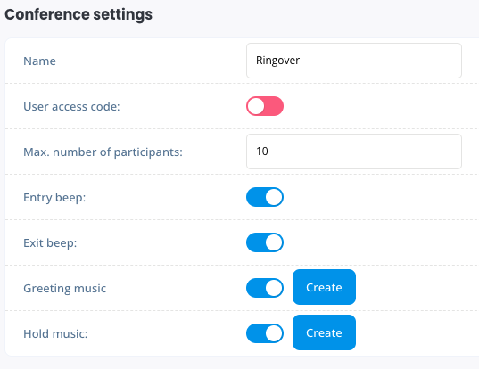 - 💻 Vaya a Configuración> Audioconferencias en su Panel de Ringover