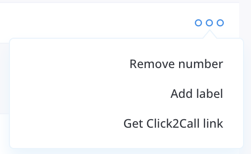 - 💡 Tiene la opción de obtener un enlace de llamada que le permite llamar con un solo clic. Para llamar y añadir una etiqueta a su audioconferencia, haga clic en los tres puntos a la derecha del número