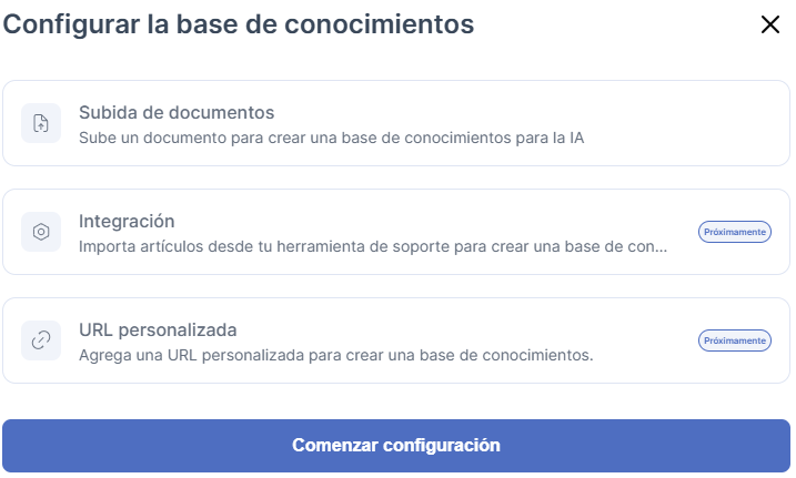 - Haz clic en Configurar la base de conocimientos.