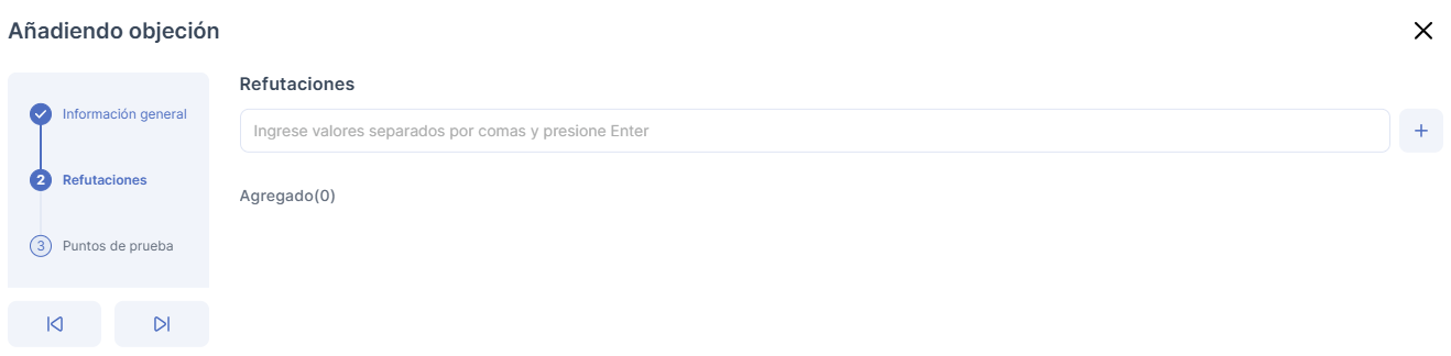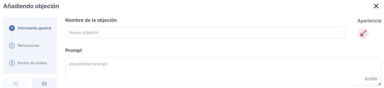 - Prompt: añade un texto descriptivo o una reformulación de la objeción.
