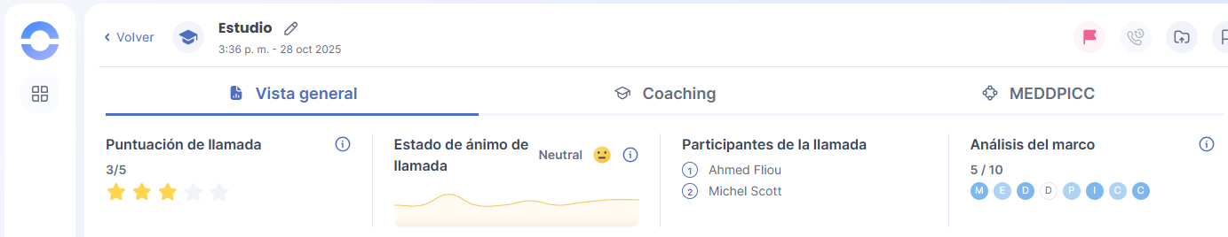 Una vez que el framework está activado y asignado, la IA analizará automáticamente cada llamada según los criterios definidos.