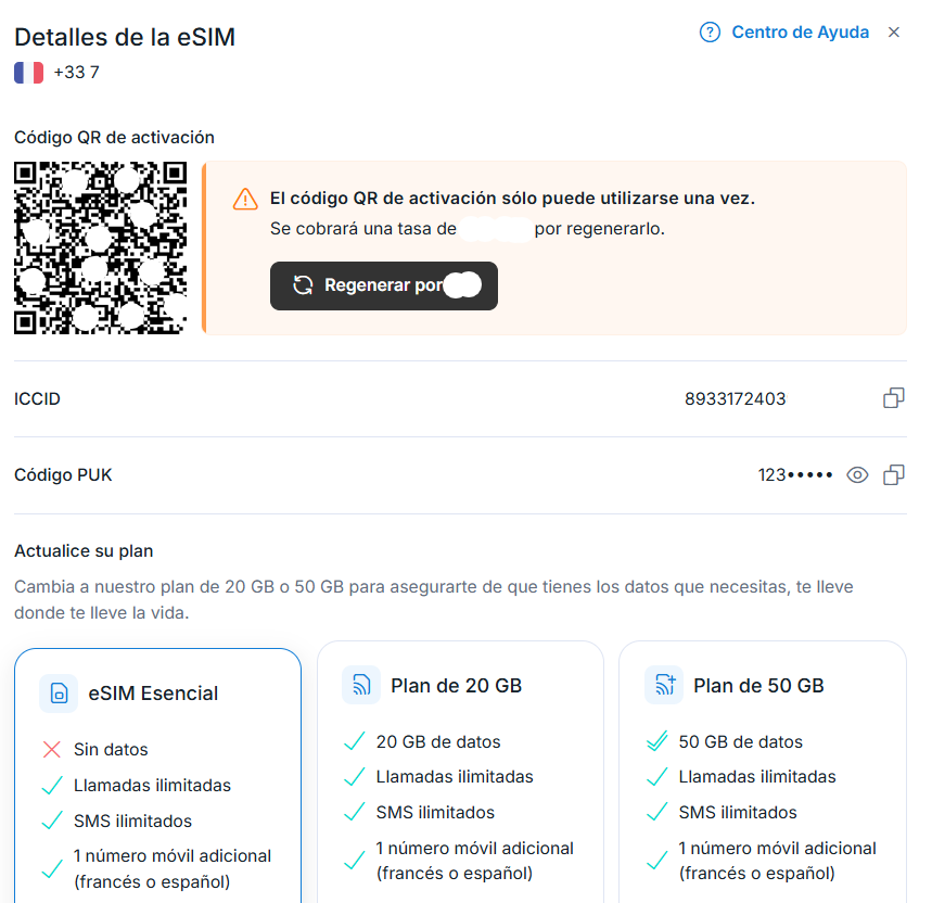 Tu código QR de activación, que te permitirá conectar tu eSIM a tu móvil.