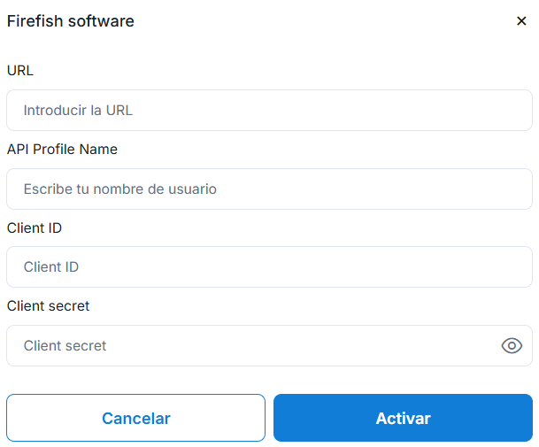 Luego, ingresa tus datos de Firefish y haz clic en “Activar”.