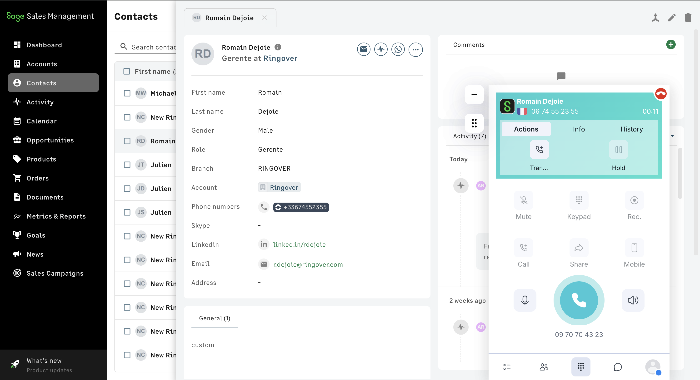 La integración Ringover + Sage Sales Management te permite: