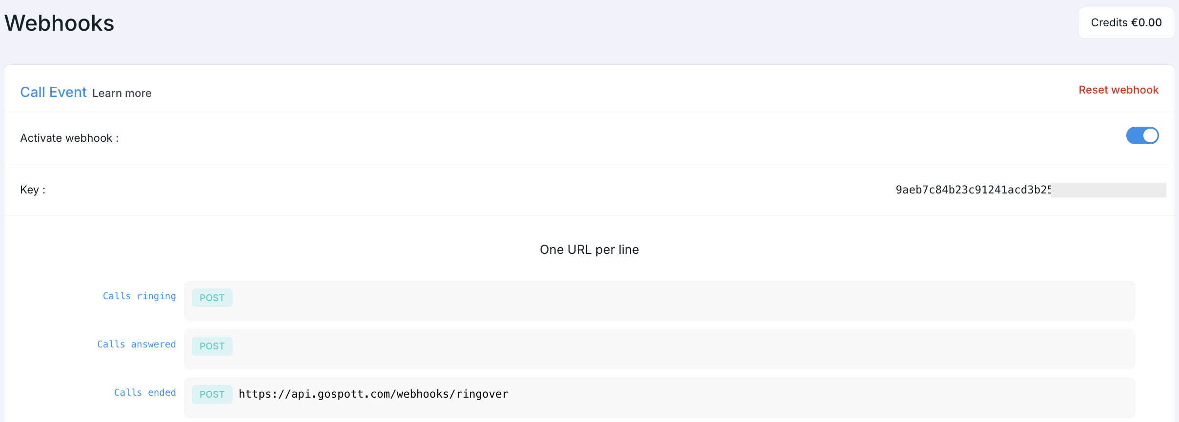 https://api.gospott.com/webhooks/ringover - Guarda los cambios