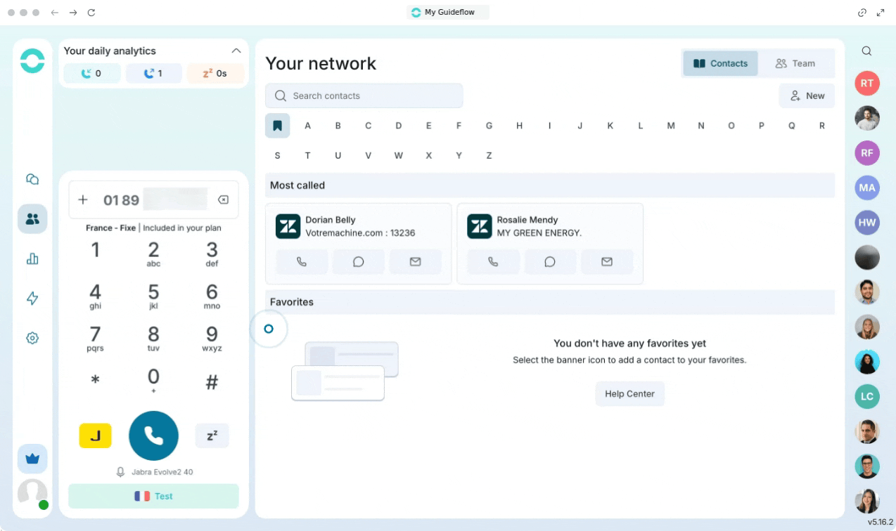 El teclado de Ringover le permite guardar rápidamente números de teléfono como contactos durante o antes de realizar una llamada, ayudándole a mantener su lista de contactos organizada y actualizada.