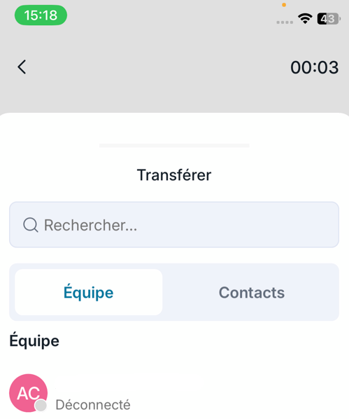 Entrez le nom de la personne 💬 vers qui vous souhaitez transférer l'appel.