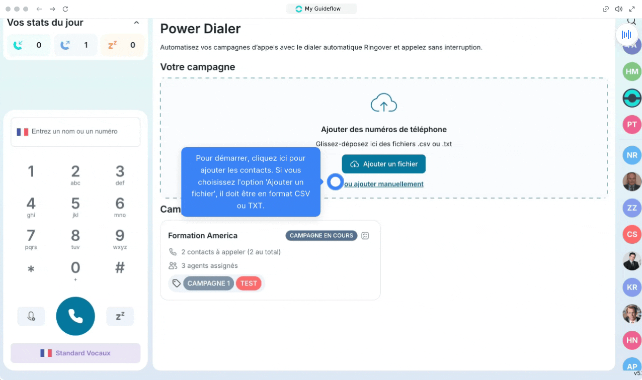 Vous pouvez importer des fichiers de numéros directement dans votre Power Dialer.
