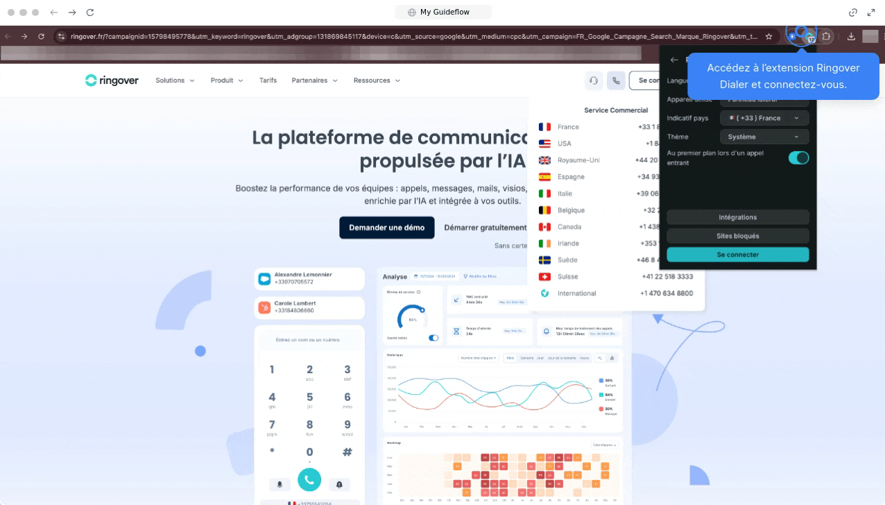 - Ouvrez l’extension Ringover Dialer et connectez-vous.
