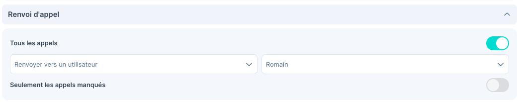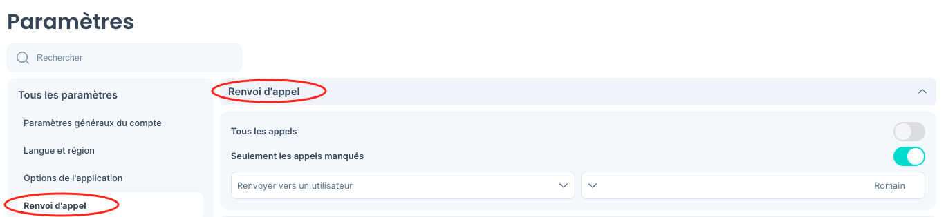 - Recherchez les paramètres, puis la section "Renvoi d'appels"