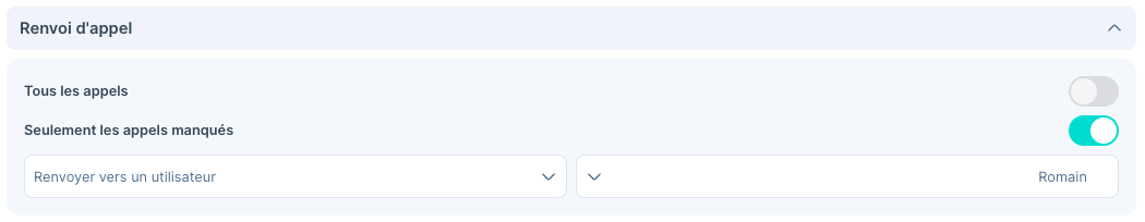 Lorsqu'un renvoi vers un numéro externe est effectué, l'utilisateur A sera notifié par mail concernant l'appel manqué ou l'interaction avec la messagerie vocale.