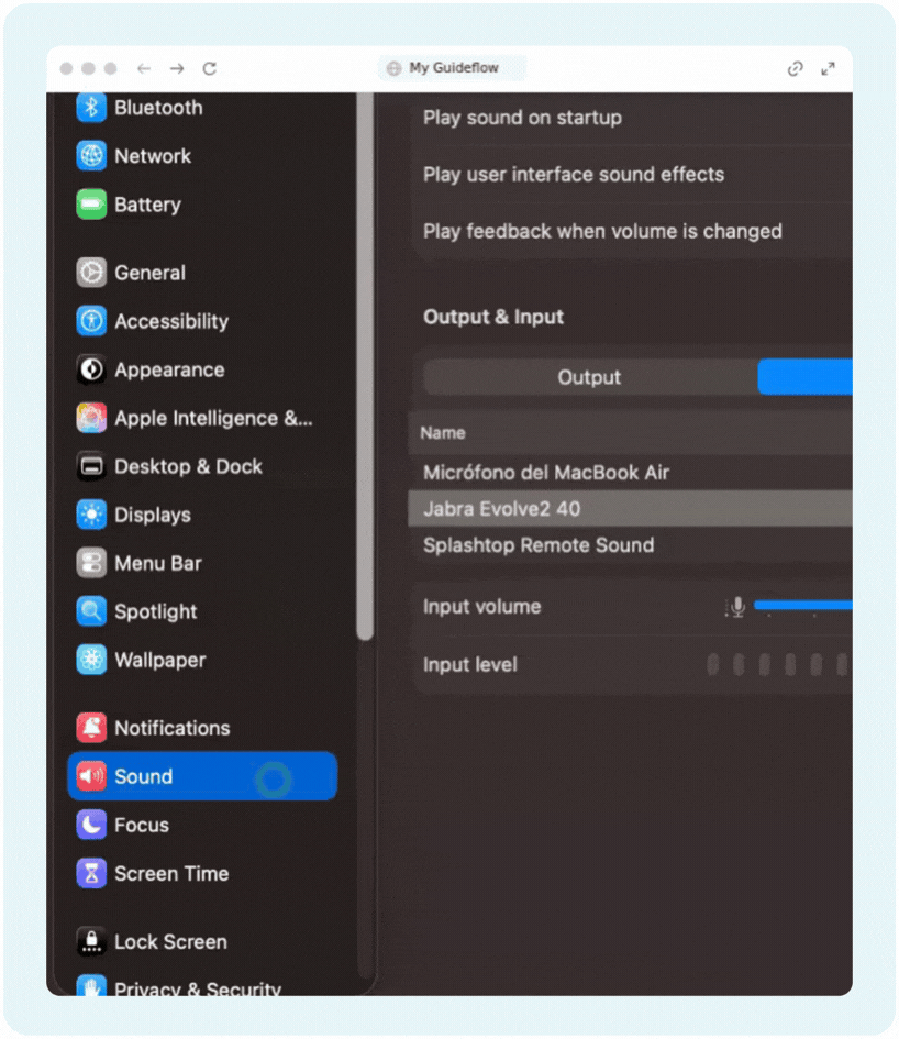 - Sélectionnez votre périphérique d'entrée (par exemple, Jabra Evolve 2 40).