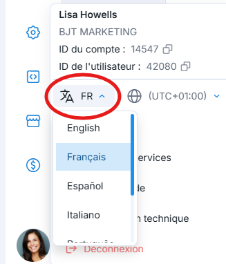 Vous pouvez modifier la langue depuis chacune des 3 interfaces : Webapp, application bureau et Dashboard.